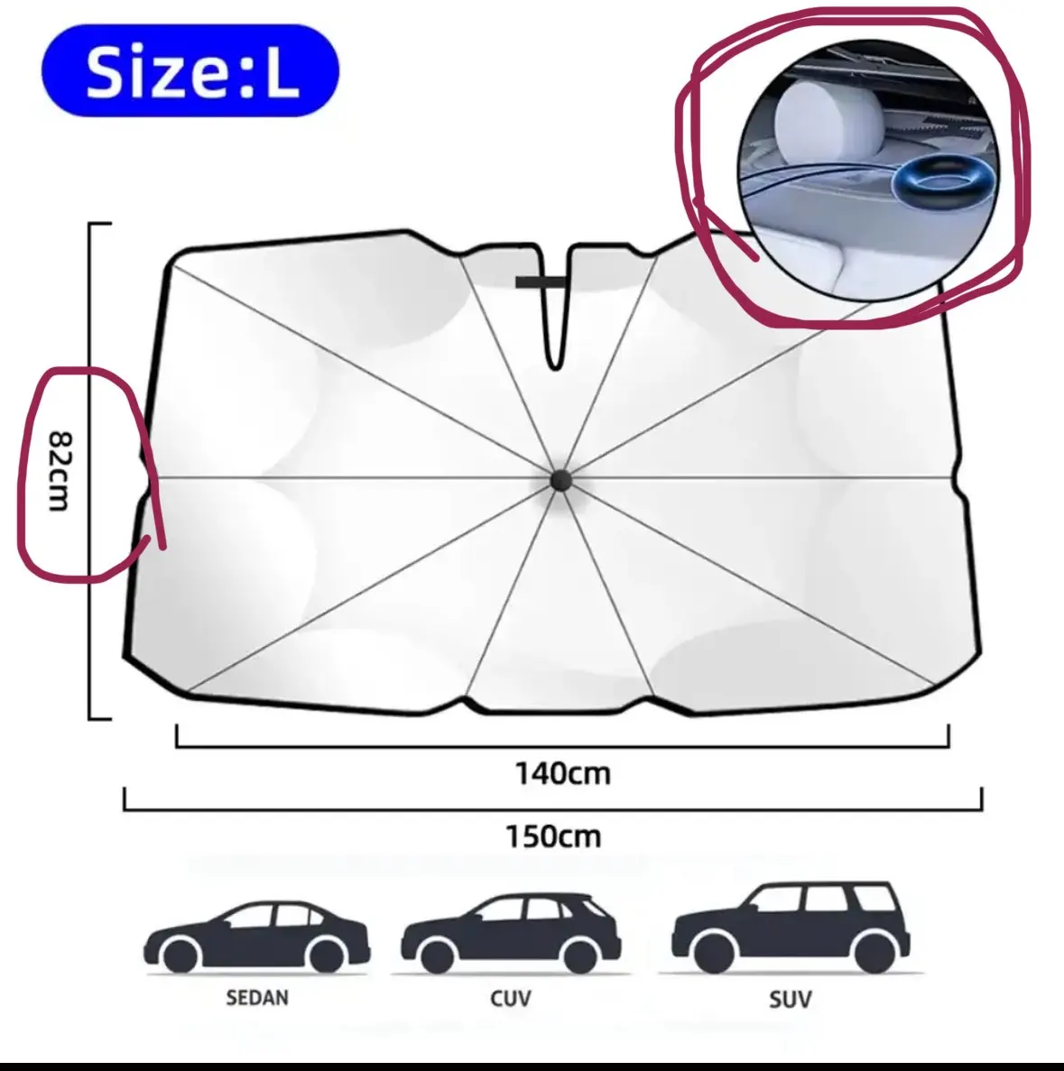 מטריה לשמשה קדמית. גודל מומלץ 145/82