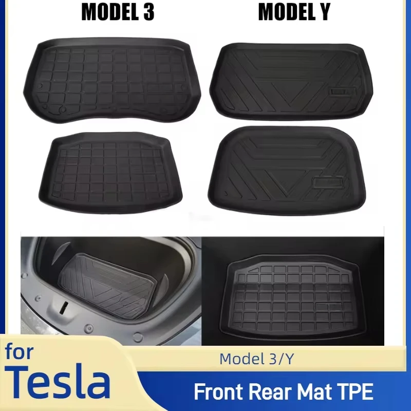 Front Rear Mat TPE Cargo Pad For Tesla Model Y/3 2023 Accessories Model 3/Y 2017-2023 3D Waterproof Tray Storage Pads Mats