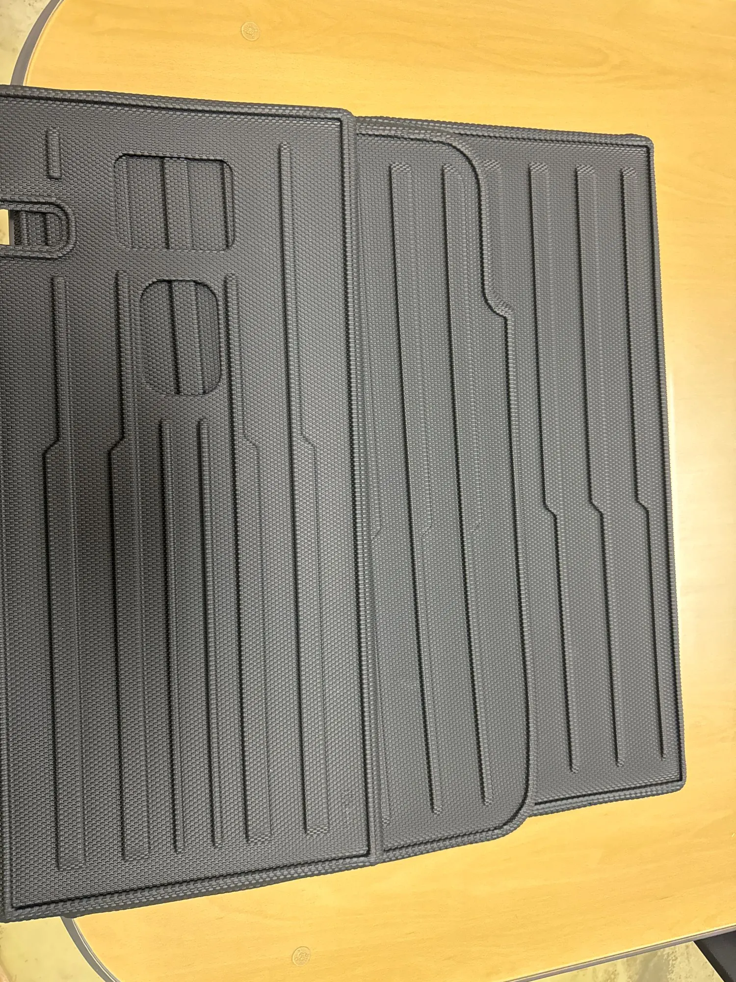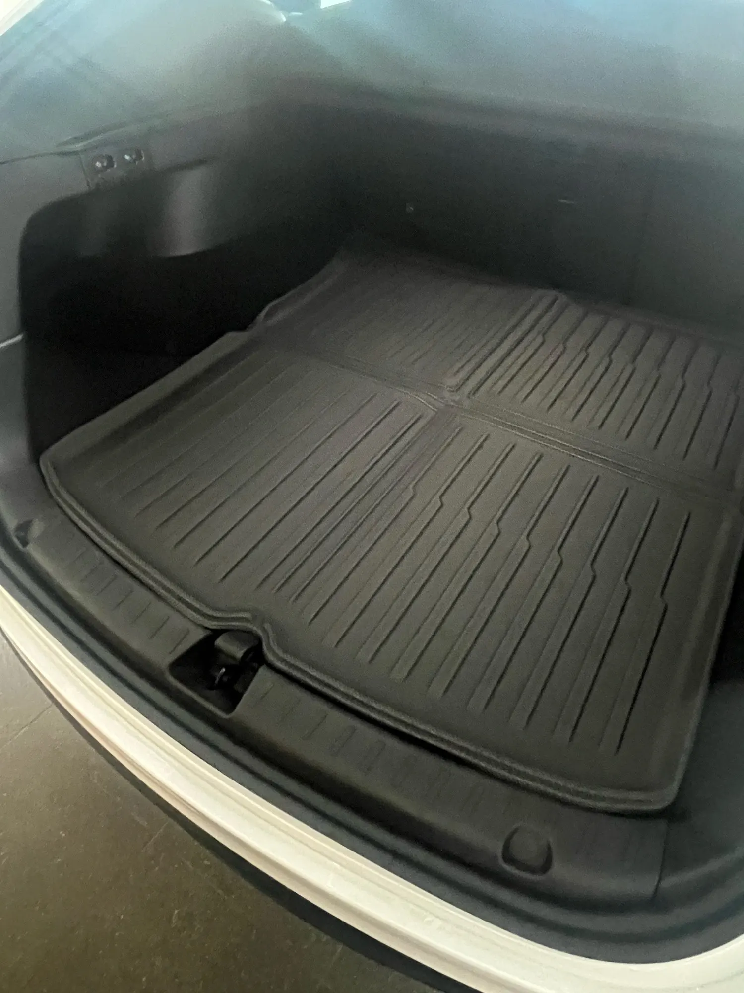 There is a regret that there was a picture on the bottom of the floor mat. There’s a feeling of being pushed a little bit. The fit fits well and is good. 24 years Model Y